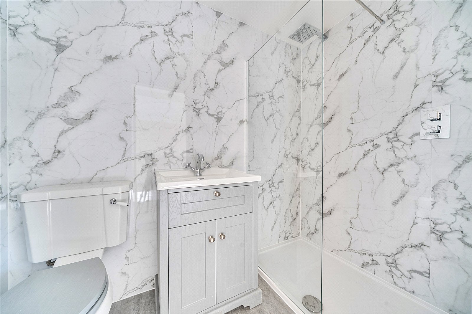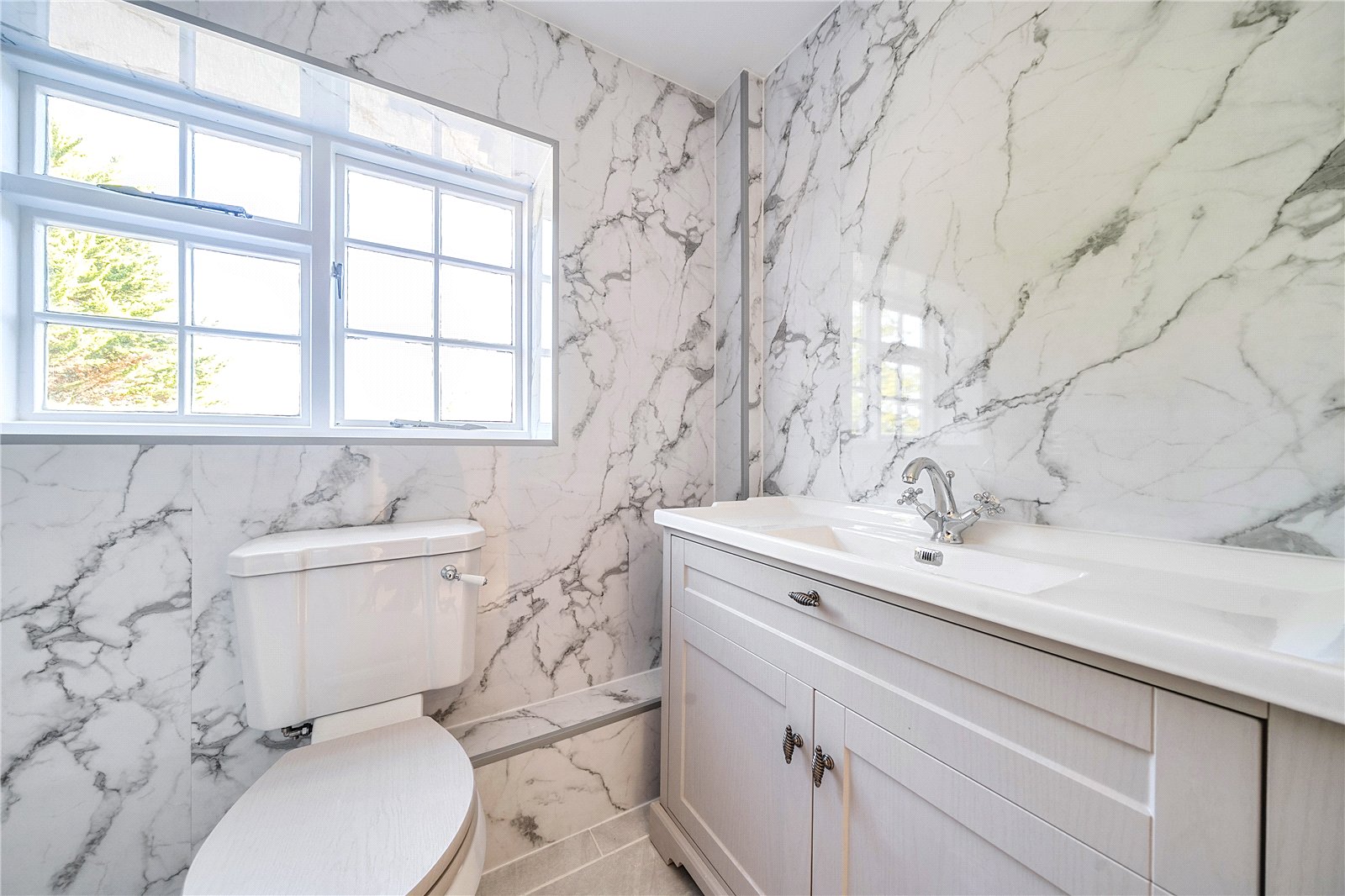 Upstairs, you’ll find two spacious double bedrooms. The main bedroom boasts an en-suite shower room and beautiful views over the landscaped surroundings. The third bedroom is also a good size double in close proximity to a spacious, refitted family bathroom.