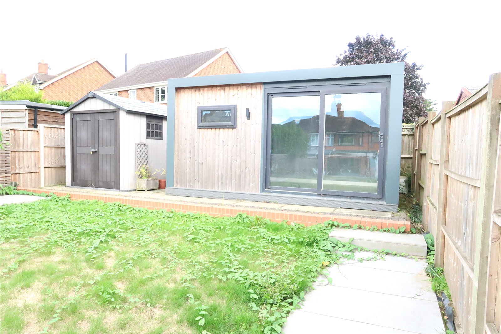 To the rear of the property there is a large southerly aspect garden. With a patio area leading to the main part of the garden laid mainly to lawn, with a shed and a summer house/ office at the rear of the garden.