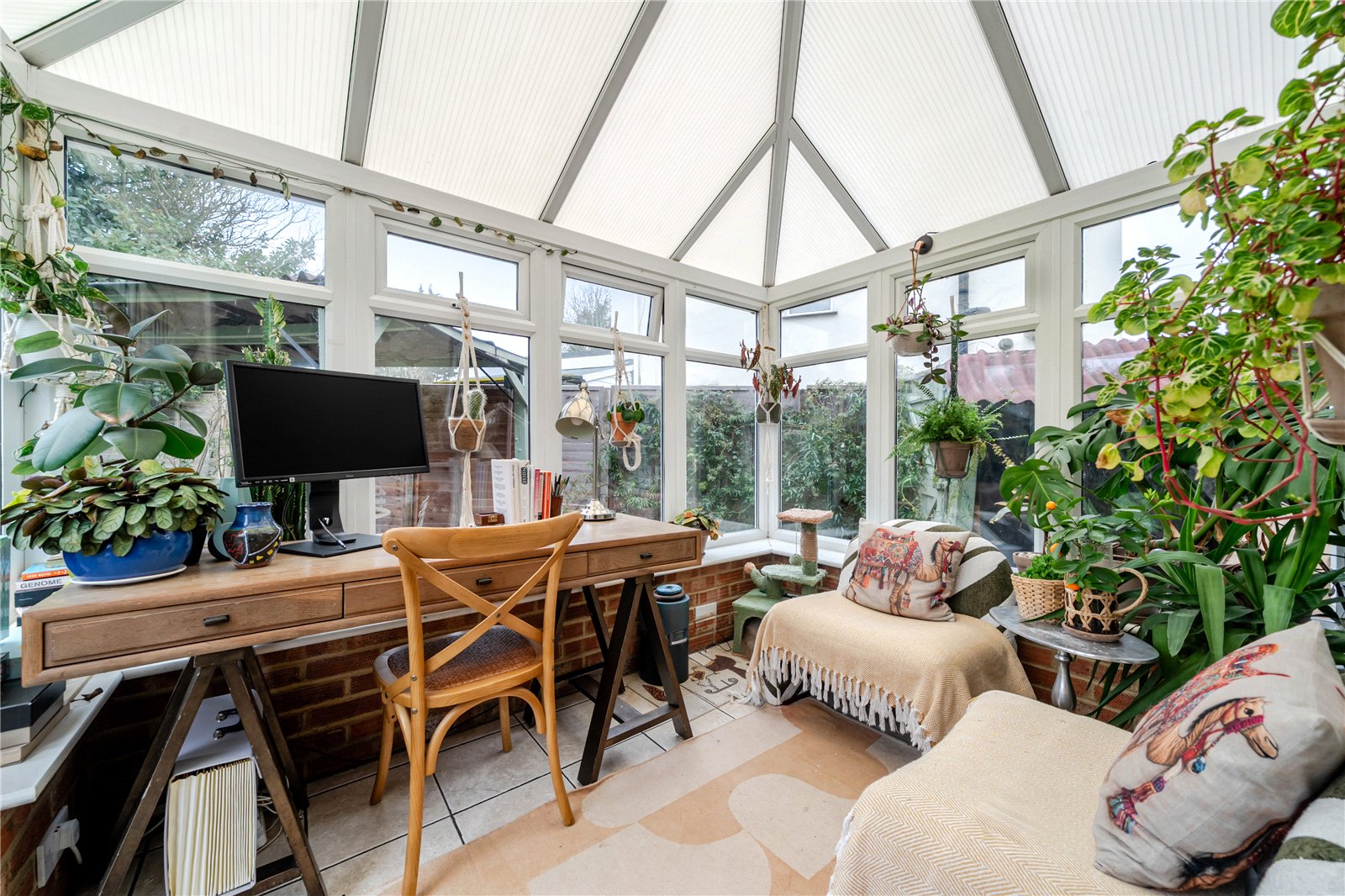 To the rear there is a southerly aspect garden that goes on and on, with a large garage/workshop complete with power.