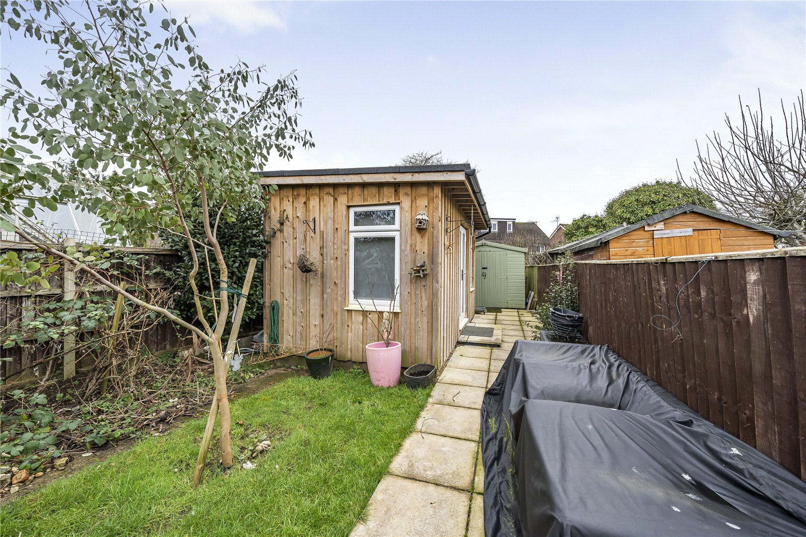 There is also a large storage shed at the very bottom of the garden.
