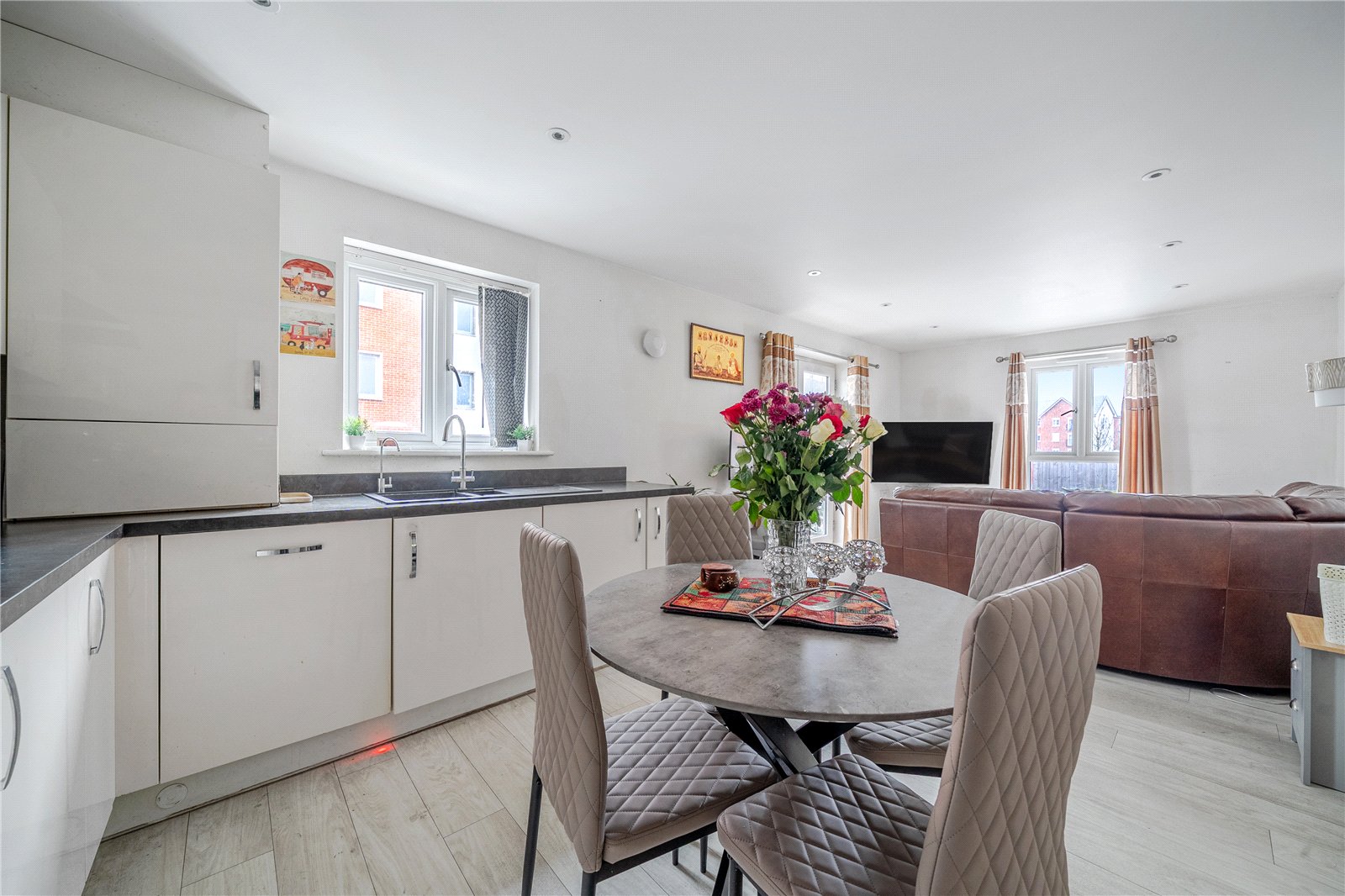 There is a very spacious open plan kitchen diner/lounge area with large windows to rear and double doors to the balcony at the front of the property.