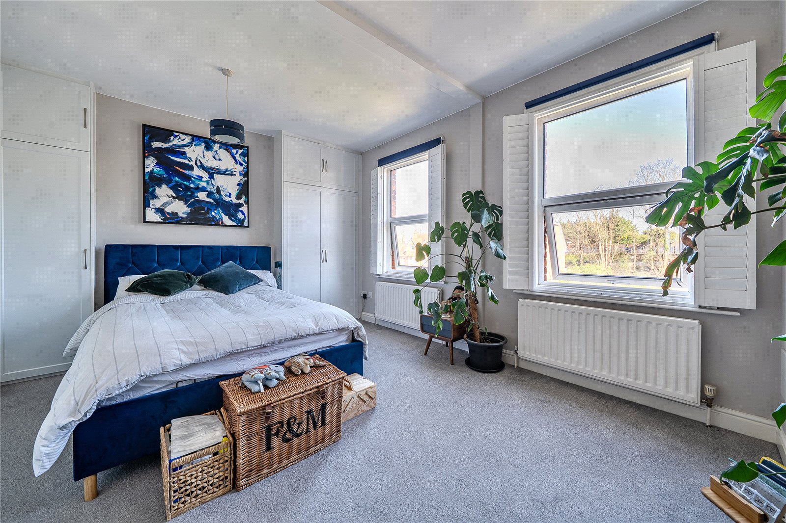 The bedroom again has large windows making it light and airy, and comes with built in wardrobes.