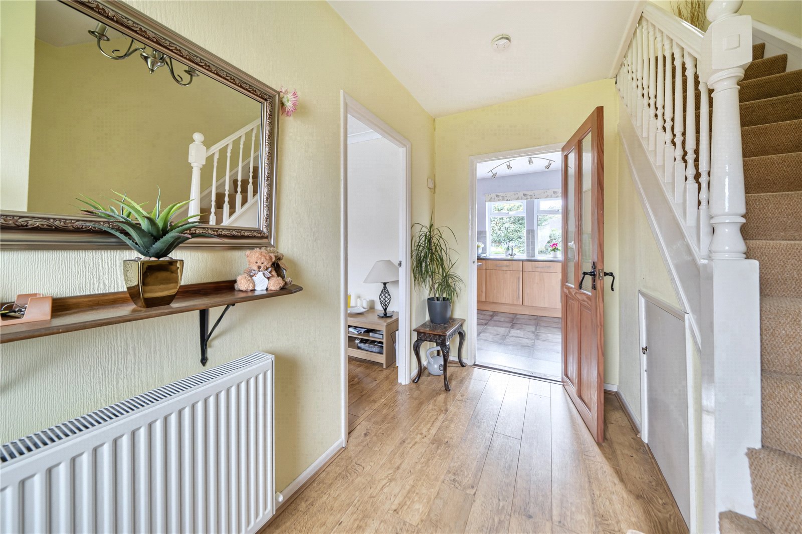 The refitted kitchen has wall to base units, integral appliances and a cooker/hob with extractor fan. The kitchen is light and airy and overlooks the pretty rear garden. There is also a downstairs cloakroom.